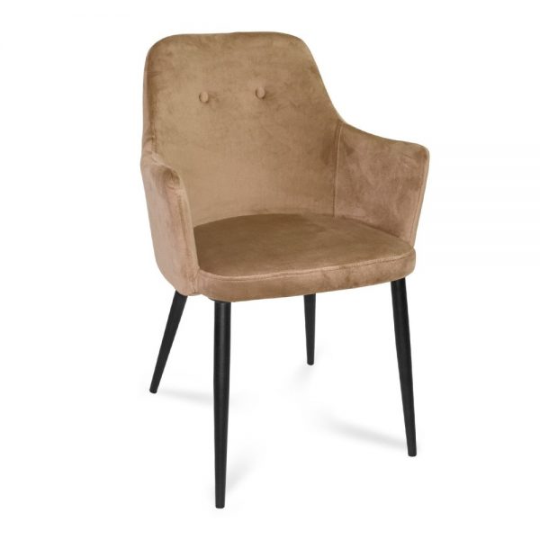 Sillón tapizado en terciopelo, con asiento y respaldo acolchados.