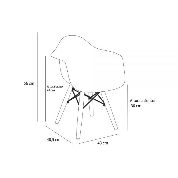 Estructura de varillas metálicas de color negro y patas de madera de haya.