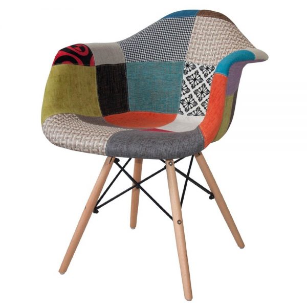 Sillón fabricado en polipropileno recubierto por una funda de patchwork.