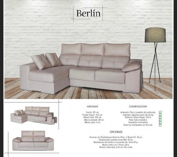 -Estructura: madera de pino + tablero DM. Recubierto de Poliuretano flexible de 15 kg/m3.
