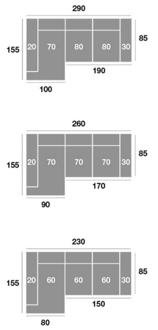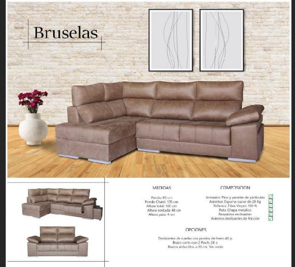 – Opciones: Arcón de Chaise longue 80p. Chaise logue partida reversible 100p. Deslizantes de ruedas con puntos de freno 40p. Brazos reducidos a 20 cm Sin coste.