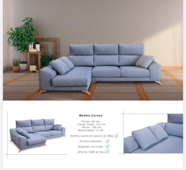 -Composición: Asientos: Espuma suave de 28kg. Rellenos: Fibra 100%. Pata: Tubo metálico. Respaldos: Reclinables. Asientos extraíbles.