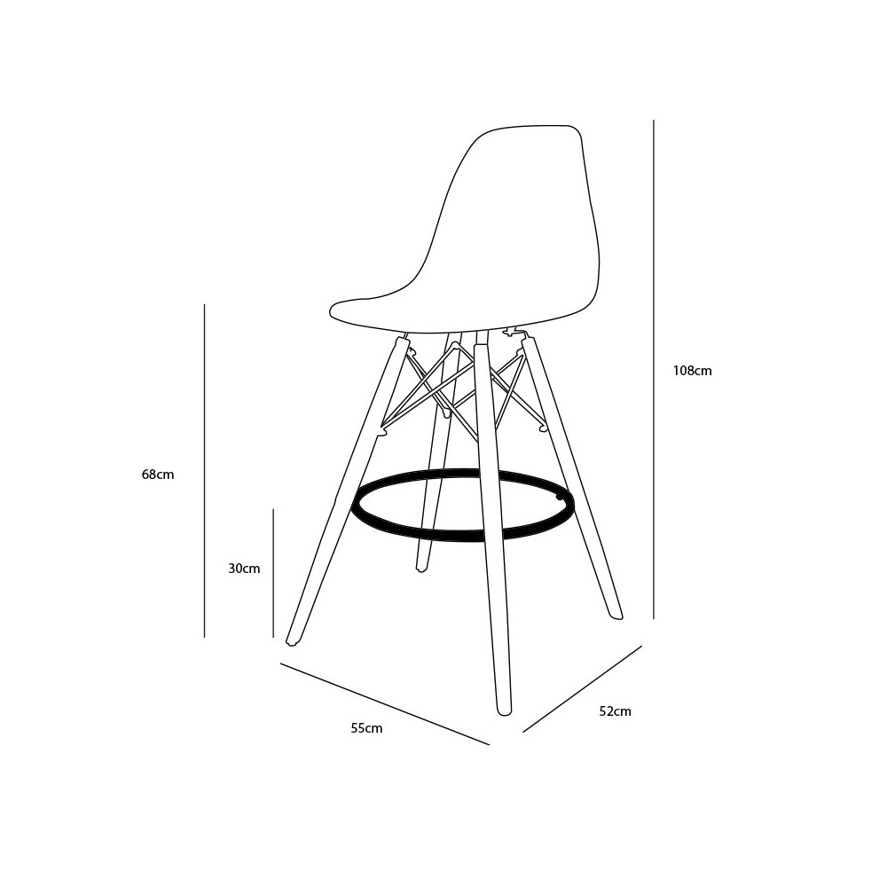 Alto: 108 cm | Altura asiento: 68 cm | Altura reposapiés: 30 cm