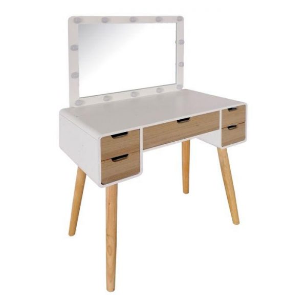 Tocador NATURAL-BLANCO MADERA – ESPEJO 80 X 40 X 129 CM
