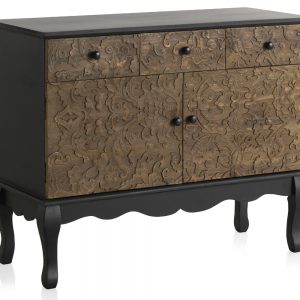 COMODA MADERA 2 PUERTAS Y 3 CAJONES FRONTIS TALLADOS