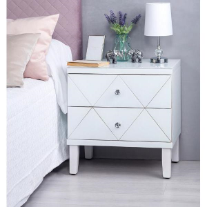 MESITA 2 CAJONES (58X55X40) CRISTAL BLANCO CON LINEAS