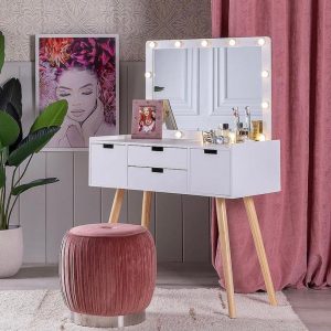 Tocador BLANCO-NATURAL MADERA – ESPEJO 80 X 40 X 118 CM