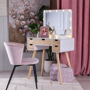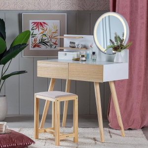 Tocador NATURAL-BLANCO MADERA – ESPEJO 80 X 40 X 129 CM